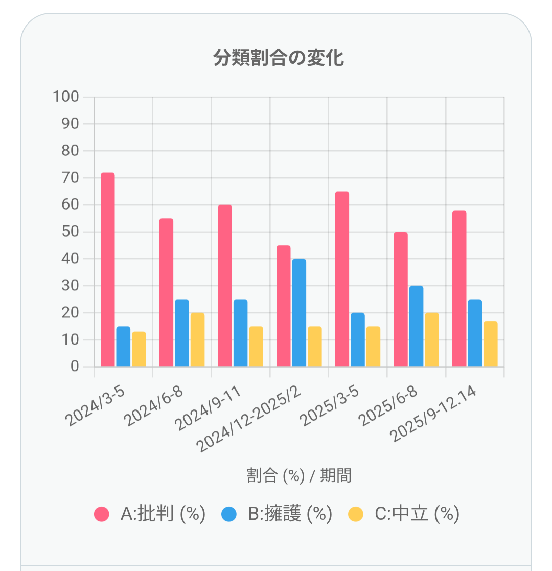 - 2025年以降、中立投稿が増加